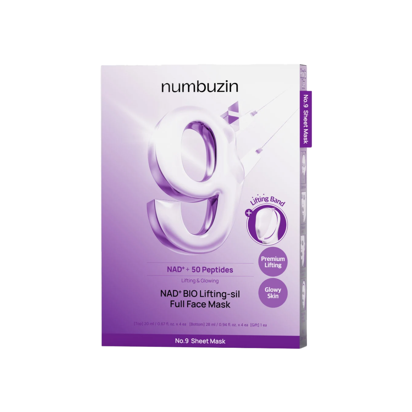 Das Numbuzin No.9 NAD Bio Lifting Full Cover Facial Mask 4er Set bietet eine intensive Anti-Aging-Kur mit NAD und straffenden Wirkstoffen. Die Masken glätten feine Linien, spenden Feuchtigkeit und verbessern die Hautelastizität – für ein sichtbar gefestigtes, jugendliches Hautbild. Inklusive kostenlosem Lifting Band!